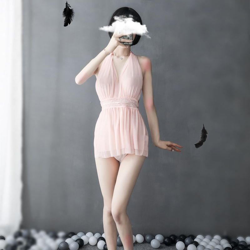 (情趣内衣)羞羞宝贝深V性感挂脖睡裙(粉)